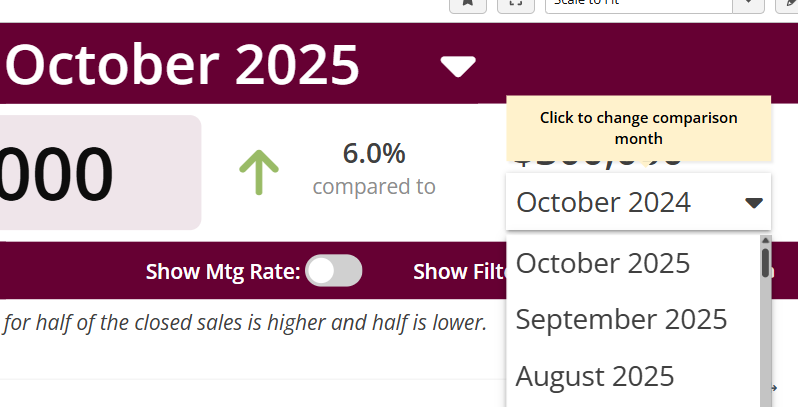 The most common way clients use this feature is when a past buyer asks how much their home has appreciated since they purchased it. In that situation, you can keep the main month set to the current month, and simply change the comparison month to the month when the client either went under contract or closed on their home.